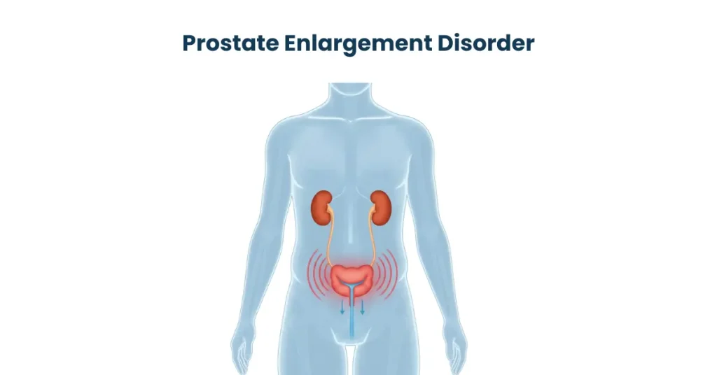 Prostate enlargement, also called benign prostatic hyperplasia (BPH), is common in older men. The prostate grows and compresses the urethra, causing weak urine flow, frequent nighttime urination, and incomplete bladder emptying. While prostate enlargement is non-cancerous, untreated cases can lead to urinary retention or kidney problems. Treatments include medications, minimally invasive procedures, or surgery. Lifestyle adjustments such as reducing caffeine and alcohol intake and staying physically active can help manage symptoms. Regular screenings allow early detection and timely intervention.